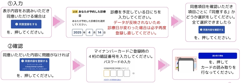 | 検査・診察へ迅速に | 既にマイナ保険証の確認が済んでいるため、すぐに検査・診察へご案内できます。 |