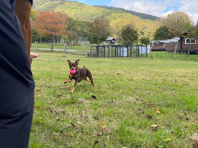 広いキャンプ場にはドッグランもあるので、一緒に走ったりと家族みんなで楽しい時間を過ごせました🐶🍖